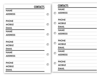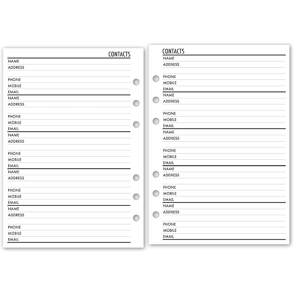 Amazon Com A5 Size Contacts Address Book Planner Insert Refill 5 83 X 8 27 Inches 148mm X 210mm Pre Punched For 6 Rings To Fit Filofax Lv Gm Kikki K Recollections And Other Binders 30 Sheets